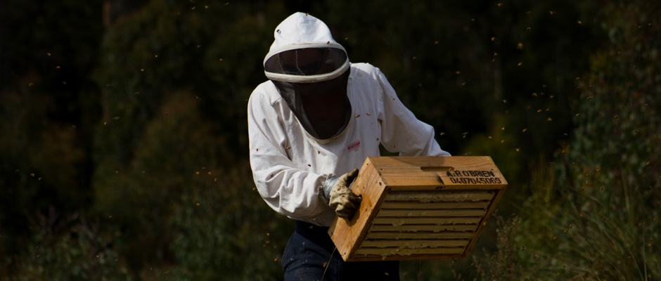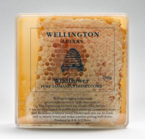 From apiaries across Tasmania, Wildflower honeycomb is cut
